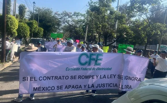 Oaxaca, Oax.- Integrantes del Sindicato Único de Trabajadores Electricistas de la República Mexicana (SUTERM) iniciaron una marcha en la Ciudad de Oaxaca, tras protestar en las instalaciones de la Comisión Federal de Electricidad (CFE), ubicadas en la Avenida San Felipe.