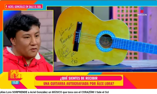 Invitado al programa de Televisión Sale el Sol, Aciel, fue sorprendido y reconocido por Alex Lora, por su dedicación y talento, quien le obsequió una guitarra autografiada “Viva el Rocanrol. El Tri”.
